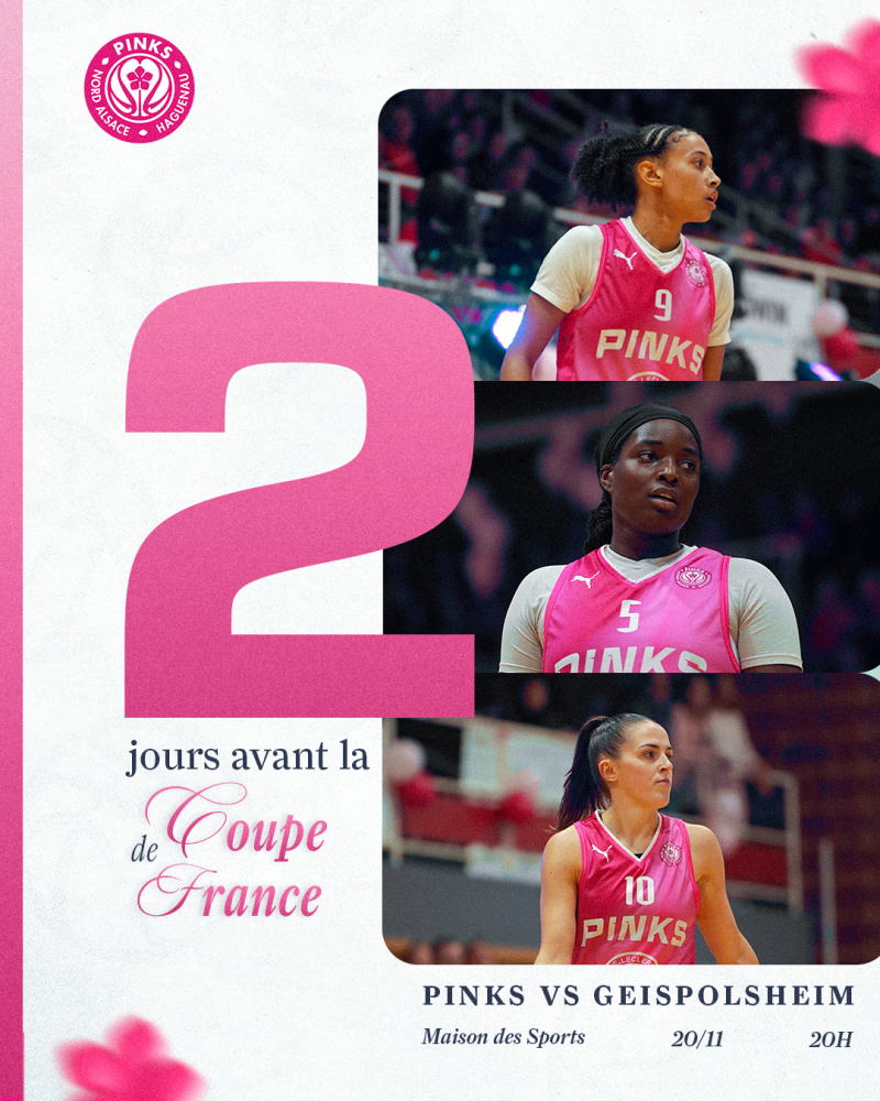 Ce samedi 22 novembre à 20h, les Pinks affronteront Geispolsheim à la Maison des Sports de Haguenau pour un match qui s’annonce intense 🔥